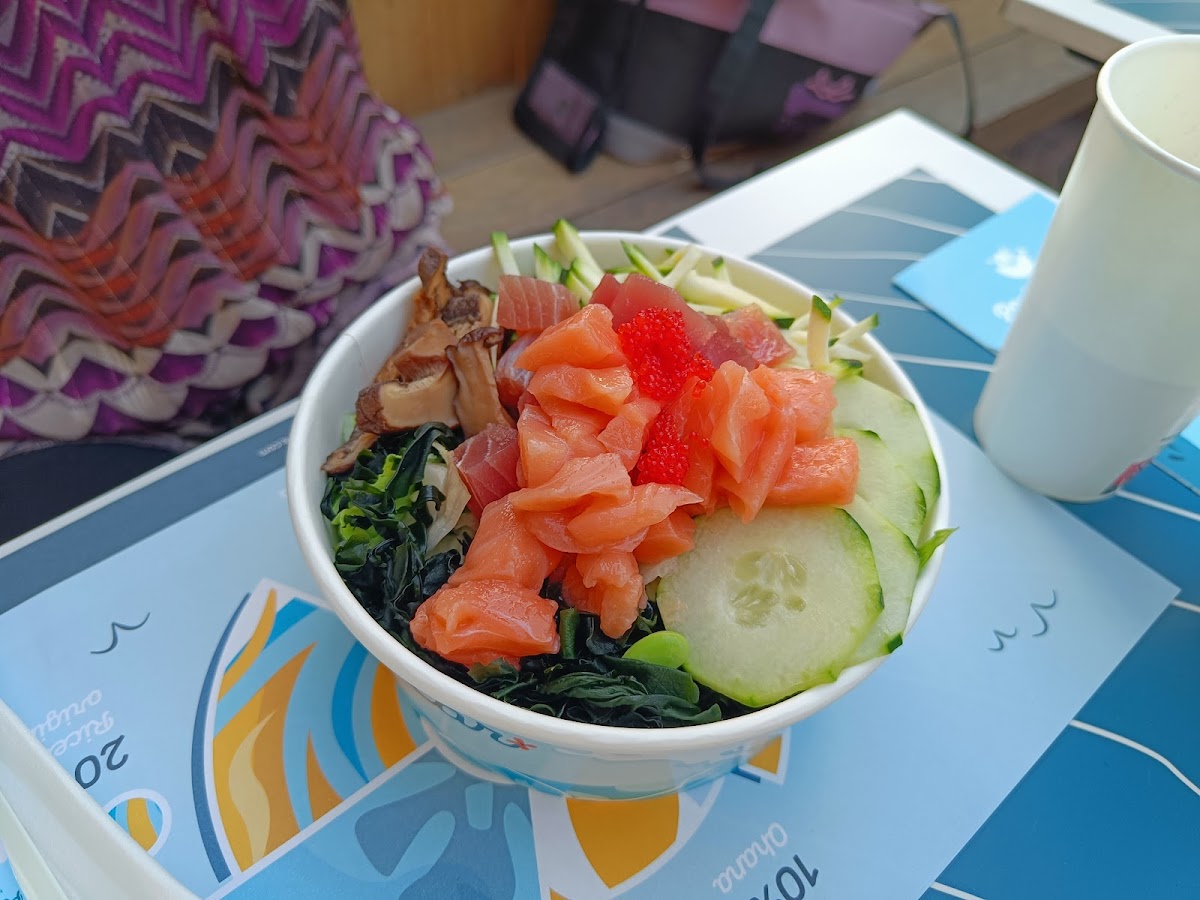 One of the standout dishes at Pacifik Poke Rivoli is the Hawaiian Poke Bowl. Bursting with fresh ingredients like marinated tuna, avocado, and a mix of tropical vegetables, this bowl brings the taste of the islands straight to your table. If you're in the mood for something different, the Teriyaki Chicken Bowl offers tender chicken glazed in a sweet and savory teriyaki sauce, complemented by crisp greens and a flavorful base. Another crowd favorite is the Coconut Reef, a dish that combines shrimp, coconut flakes, and refreshing tropical fruits for a light yet satisfying option. For those who love salmon, the Hawaiian Salmon Bowl is a must-try, with its perfect balance of fresh fish and zesty flavors. If you're particularly hungry or want to share, the Poké Large offers an even bigger portion, allowing you to enjoy more of these delightful ingredients.